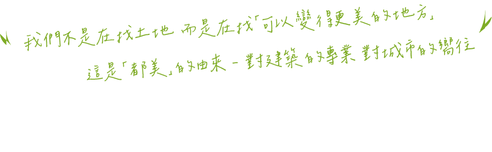 從裝修走向開發,我們深知,建築不只是商品,更承載社會責任。民國101年,「都美機構」誕生,以建築為志業,從萬華、大同到南港、士林,回應每一塊土地的未來想像。創辦人曹來旺先生奠定藍圖,由曹來春先生接手延續精神,並在臺佳建設劉興煒董事長的長年支持下,讓都美機構成長為都市更新的重要推手。